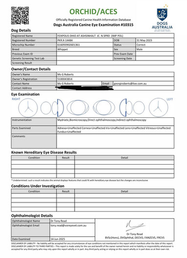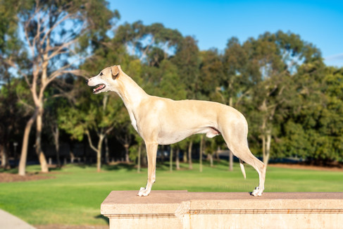 From the moment I laid eyes on his photos, I knew I had to have him and after 10 long months, he arrived into Australia! He has the perfect pedigree with low COI and high genetic diversity, he has the most perfect personality and temperament you could ever hope to own. With his phenomenal daisy cutting movement, his perfect front construction, an underline to die for with a correct tight tuck up, balanced on his perfect long loin, long, flat croup, giving great width in thigh and strong hocks, top it off with the most perfect whippet head you could find anywhere in the world, and thats Shoya!